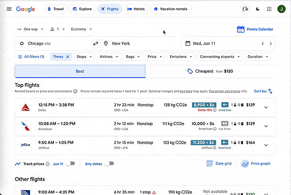 It looks just like your normal Google Flights screen but also shows the rewards cost.