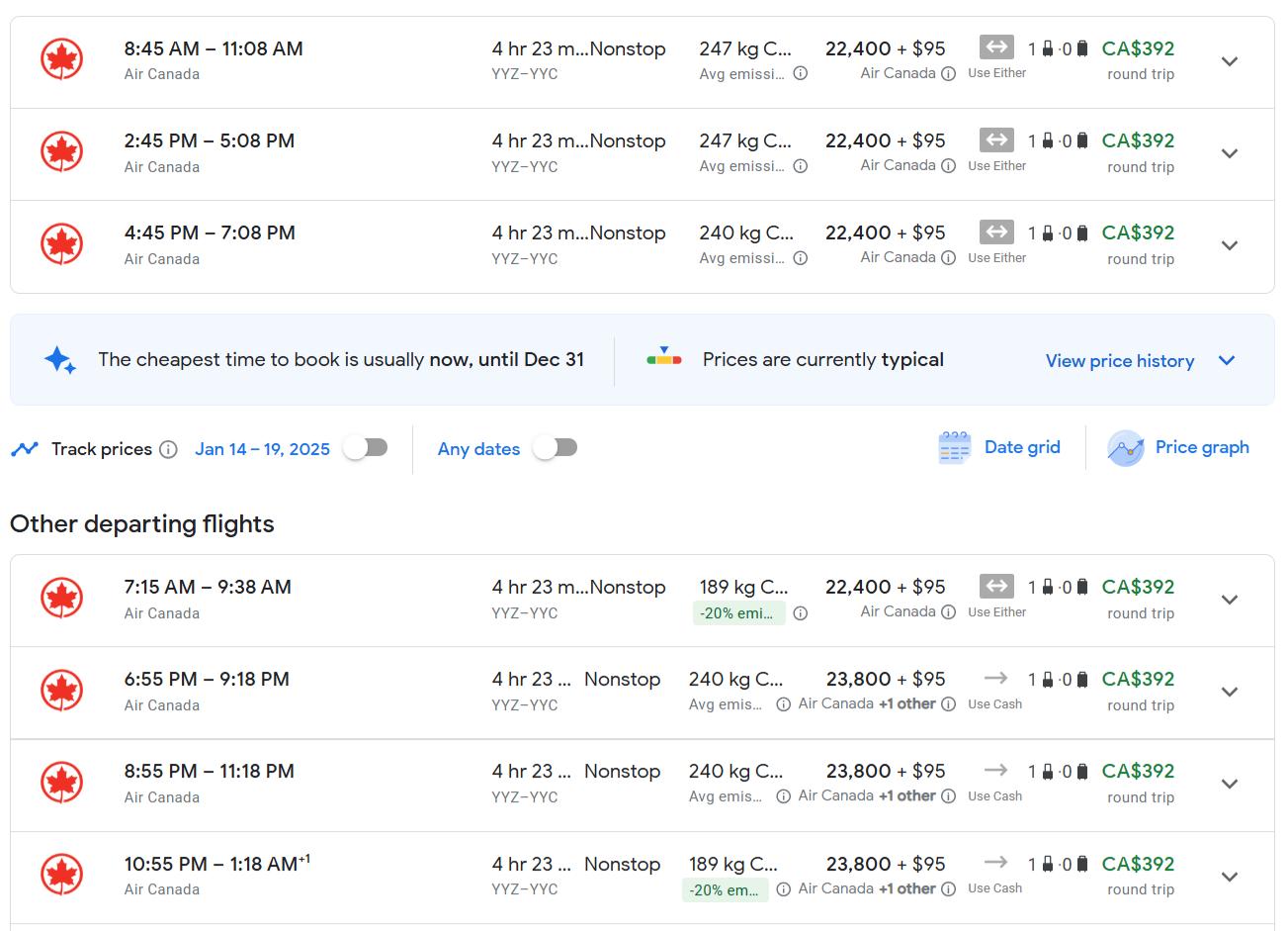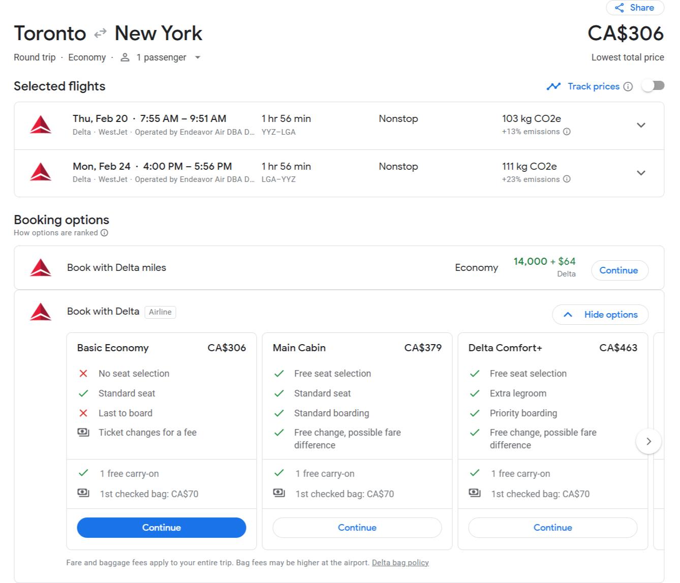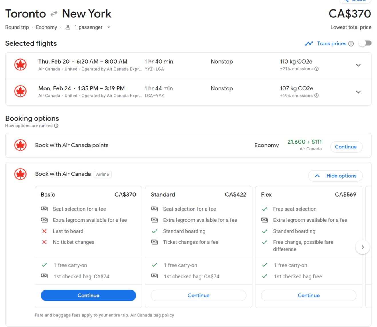 Let's revisit our first screenshot, a trip from Toronto to New York-LaGuardia, which covers all 3 airlines non-stop.