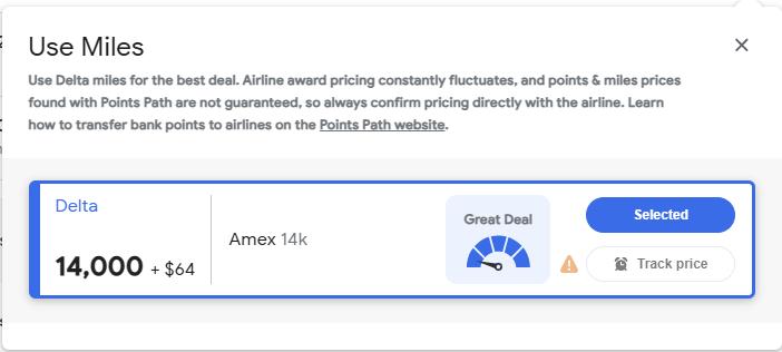 - Search for flights in Google Flights and Points Path will insert airline rewards pricing along with regular flight prices.