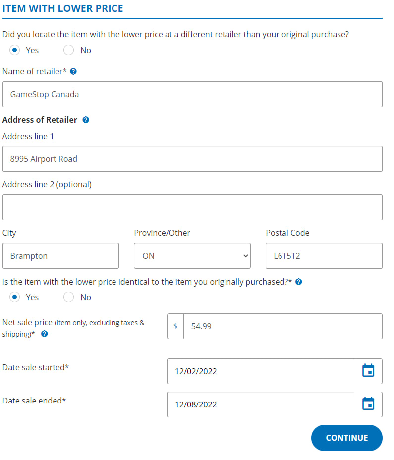 You can submit a claim over the phone or online, providing proof of the amount spent and the current selling price of the item. If your claim is approved, you’ll receive a refund for the difference, usually as a cheque.